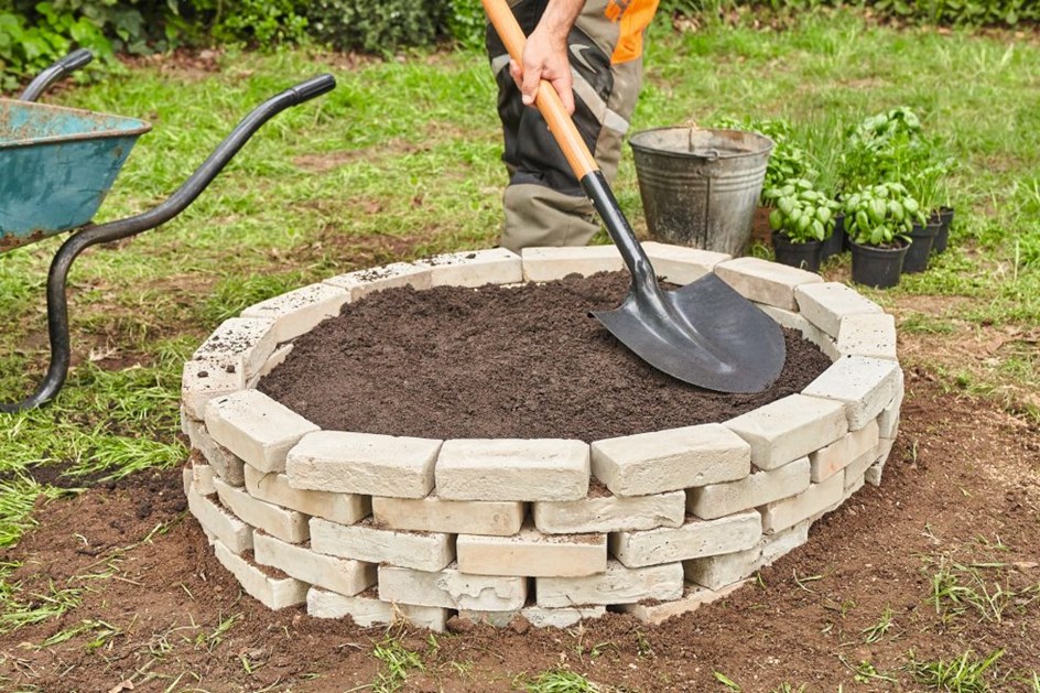 STIHL stručni savjet: Za male površine istresite zemlju za posude izravno iz vreće za zemlju, a za velike panjeve lopatom izvadite zemlju iz kolica.