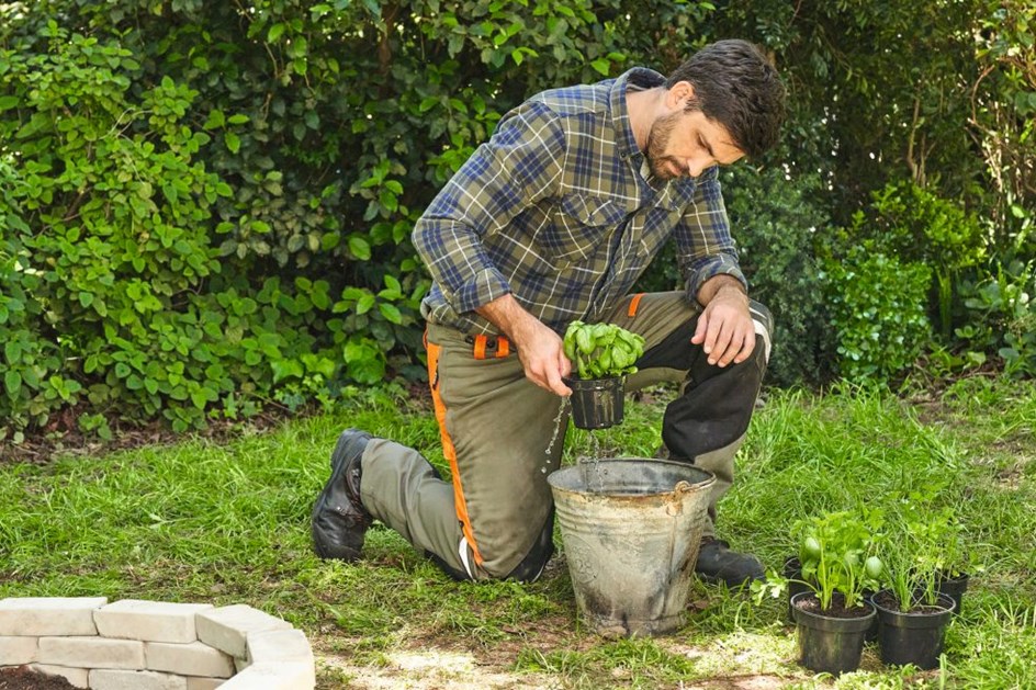 Prije sadnje začinskog bilja (ili cvijeća), prvo ga zalijte tako da posudu s biljkom potopite u kantu vode, sve dok više ne bude mjehurića. Nakon toga ih izvadite iz posude. Rukama iskopajte rupu u zemlji, stavite biljku u nju i potom zemlju pritisnite sa strane. Sada sve što trebate učiniti je zaliti svoju novonastalu malu gredicu i možete uživati u svježem bilju ili cvijeću.