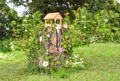 Hranilica za ptice ili hotel za kukce također stanu na panj.