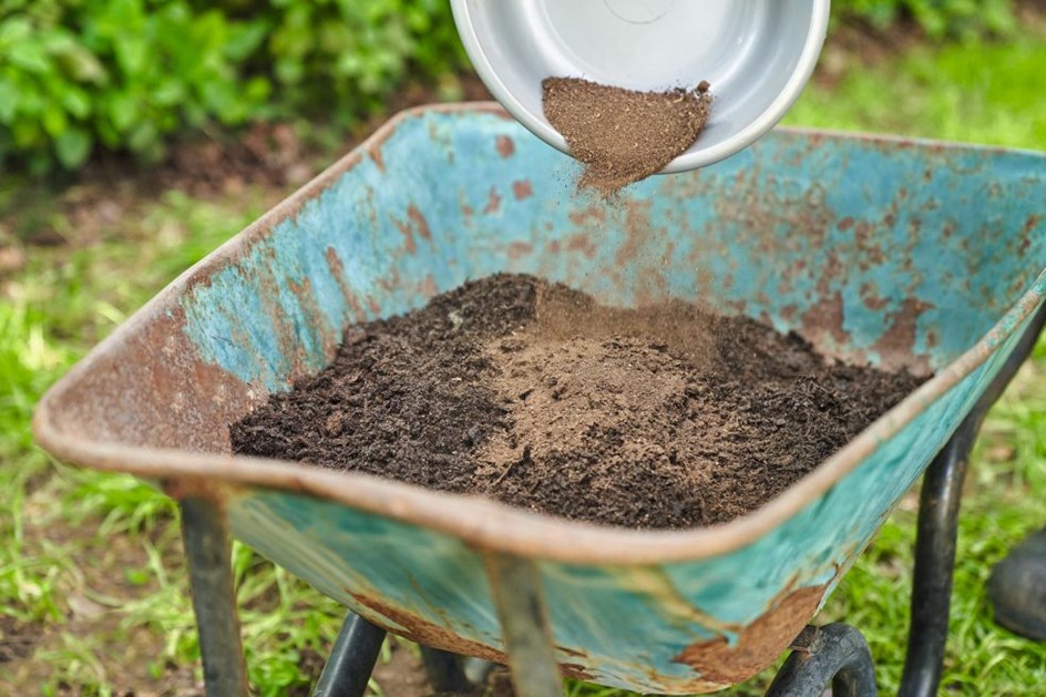 Nakon toga prosijani kompost u kolicima pospite gnojivom i lopatom sve dobro promiješajte s nekim ubrzivačem komposta. Kompost sadrži bakterije, kulture gljivica i druge vrijedne mikroorganizme koji ubrzavaju proces razgradnje. Gnojivo služi kao hrana za te mikroorganizme i tako pomaže vašem planu da panj brzo istrune.